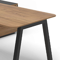 Металлическая рама в основе конструкции обеспечивает устойчивость и ряд эксплуатационных преимуществ. Механизм сдвига столешницы обеспечивает легкий доступ к скрытым электроподключениям.