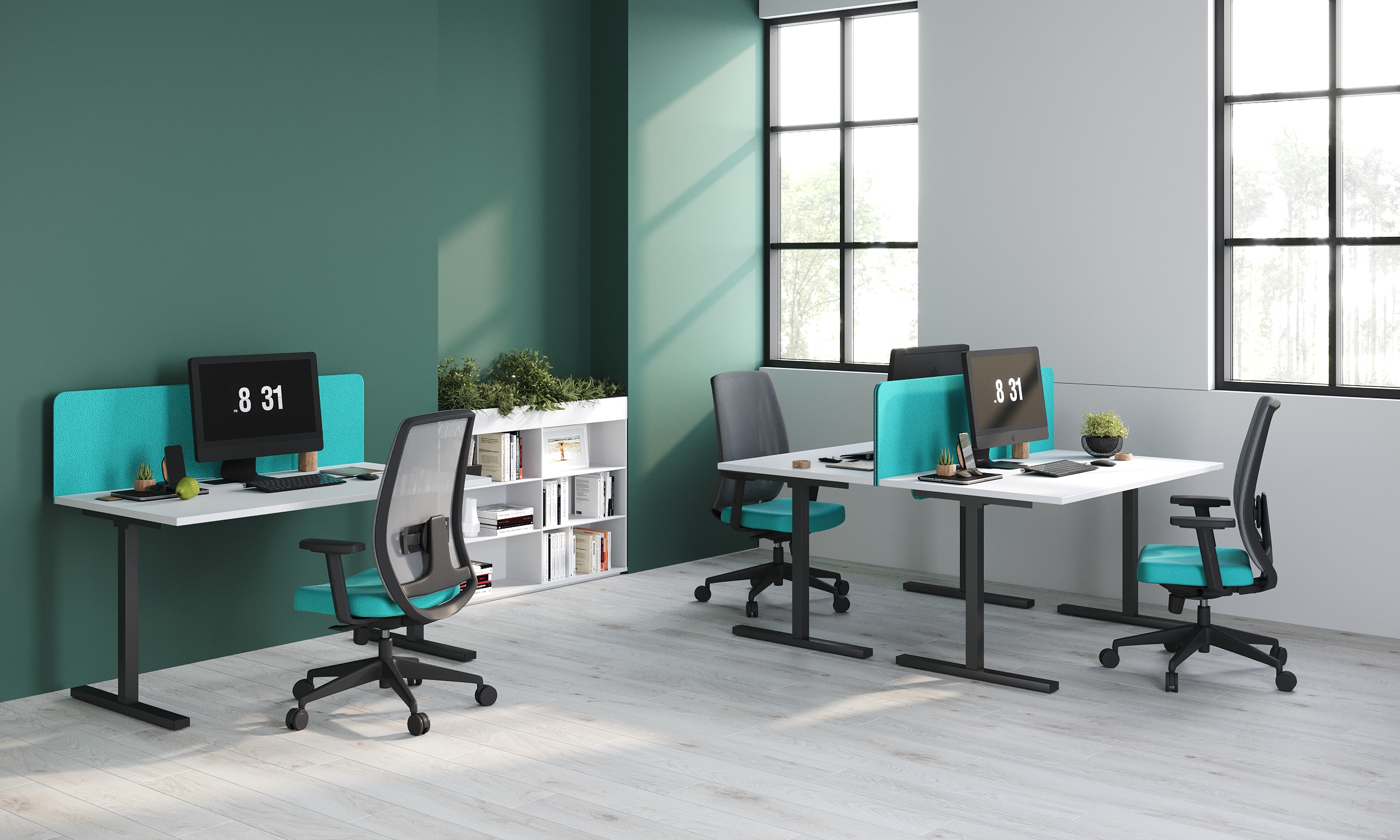 Рамные столы Effica с фиксированной высотой гармонично вписываются в интерьер и дополняют современные офисные пространства.